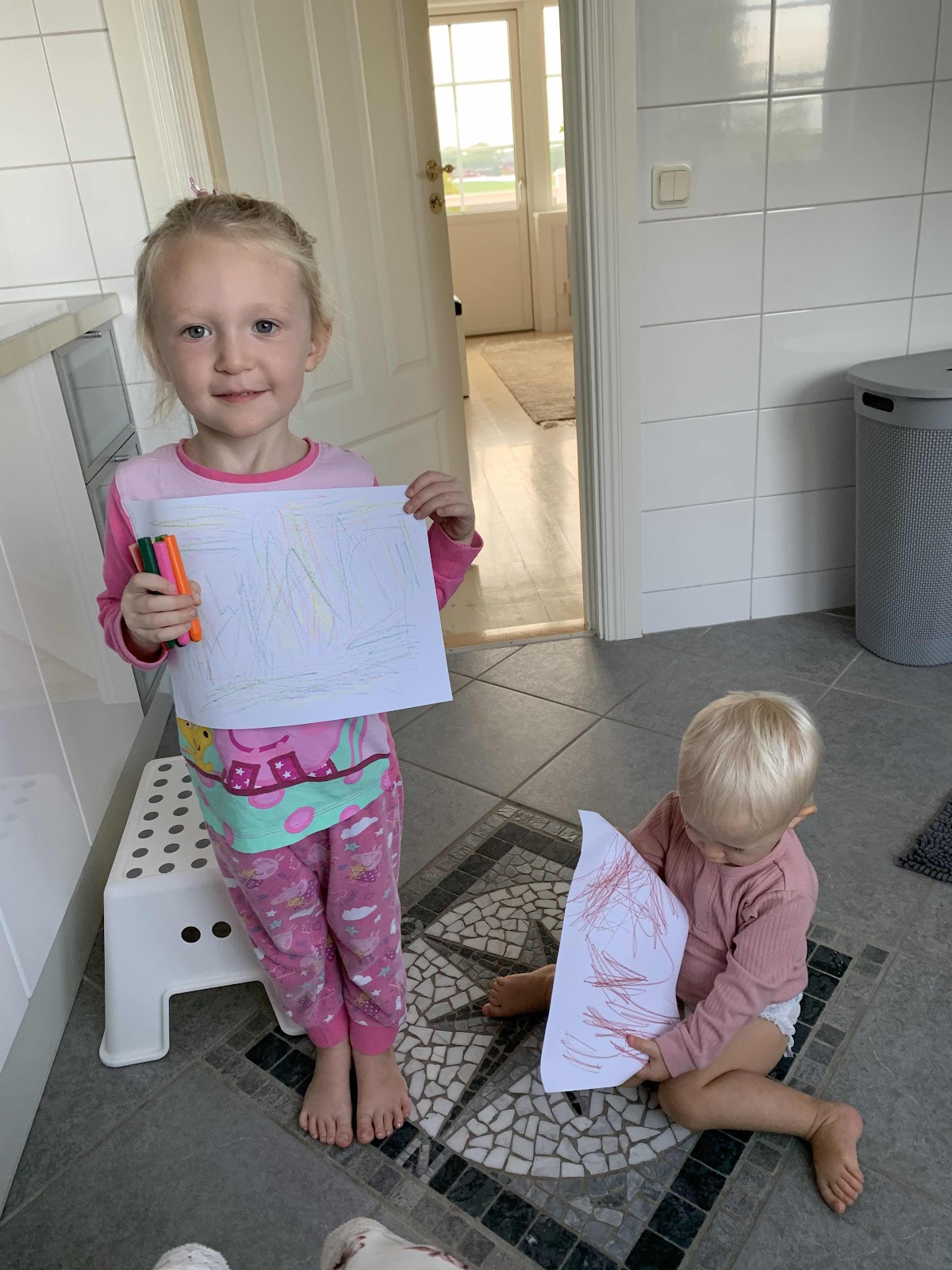Jag får förstås inte vara ifred en sekund. De kommer till och med in när jag sitter på toaletten för att stolt visa vad de ritat med Julias kritor.